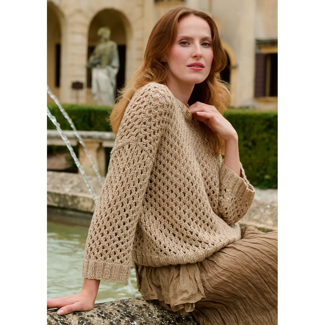 Neue Effektgarne schaffen bewegte Oberflächen oder sorgen, mit Lurex, Pailletten oder auch Perlen, für einen modernen, subtilen Glamour. Zeitlos chic und molto elegante.